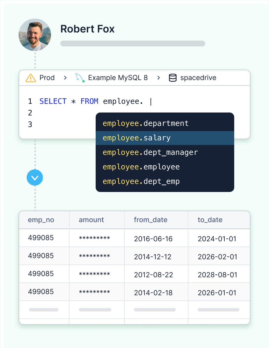 Just-in-Time (JIT) IAM-based database permissions with approval flow and audit logging.